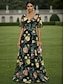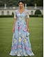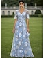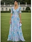 Aライン ドレス フロア丈 ウェディングゲストドレス フォーマルドレス イブニングガウン マダムドS 半袖 Vネック エレガント シンプル 装飾された フォーマル 結婚式のゲスト ケンタッキーダービー シフォン 〜と フラワープリント 刺繍 フラワー