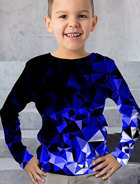 男の子 3D グラフィック 幾何学模様 カラーブロック Tシャツ Tシャツ 長袖 3Dプリント 夏 春 秋 スポーツ ファッション ストリートファッション 子供 3〜12年 アウトドア カジュアル 日常 レギュラー