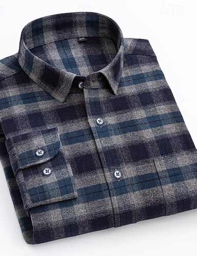 男性用 シャツ カジュアルシャツ チェックシャツ ボタンアップシャツ 格子柄 アウトドア デイリーウェア ルビーレッド ブルー ブラウン ダークブルー 長袖 ラペル 秋冬 衣類 フロントポケット
