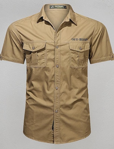 男性用 シャツ ワークウェアシャツ ワークシャツ ボタンアップシャツ カーゴシャツ レッド カーキ色 アーミーグリーン ダークブルー ベージュ 半袖 平織り ラペル バケーション ハワイアン ポケット 衣類 ファッション カジュアル 快適