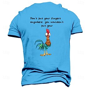 男性用面白い鶏グラフィックTシャツ | ノベルティな言葉遊び '指を入れないで' スローガン半袖