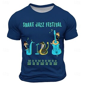 男性用 音楽 スネーク おかしい Tシャツ 半袖 Tシャツ 3Dプリント クルーネック シャツ ファッション 日常 ストリート 日常 ブラック ブルー ブラウン 夏 春 衣類 S M L XL XXL XXXL