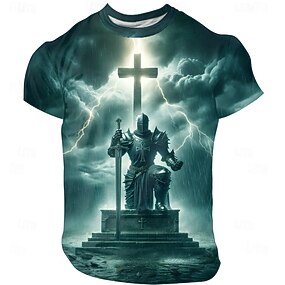男性用 テンプル騎士団 3D Tシャツ 半袖 Tシャツ 3Dプリント クルーネック シャツ 誇張された デザイナー パーティー 日常 祝日 ブルー グリーン グレー 夏 春 オールシーズン 衣類 S M L XL XXL XXXL
