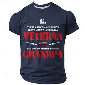 男性用 退役軍人 おじいちゃん Tシャツ 半袖 Tシャツ 3Dプリント クルーネック シャツ ファッション 日常 ベーシック ストリート カジュアル 日常 ブラック ブルー ブラウン 夏 春 オールシーズン 衣類 S M L XL XXL XXXL