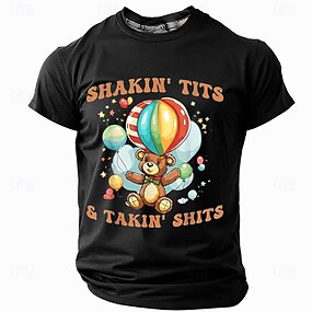 男性用 ベア おかしい Tシャツ 半袖 Tシャツ 3Dプリント クルーネック シャツ ファッション 日常 ストリート 日常 ブラック ブルー グリーン 夏 春 衣類 S M L XL XXL XXXL