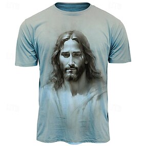 イースター 男性用 グラフィック イエス Tシャツ ティートップ 半袖 Tシャツ 3Dプリント クルーネック シャツ 日常 デザイナー レトリ/ヴィンテージ スポーツ・アウトドア 祝日 お出かけ ブルー カーキ色 グレー 春夏 衣類 S M L XL 2XL 3XL