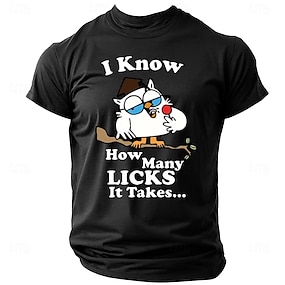 男性用 動物 フクロウ レタープリント おかしい Tシャツ ティートップ コットン100% 半袖 グラフィック シャツ ブラック ダークブルー 快適なTシャツ ストリート スポーツ・アウトドア ファッションデザイナーの衣類