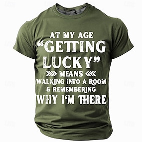メンズショートスリーブグラフィックTシャツ、面白い「ラッキーをつかむ」老化のメモリークオート、ライフスタイルユーモアTシャツ