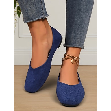 普段使い、オフィス、旅行に最適なレディースフェイクスエードクラシックスクエアトゥスリッポンフラットシューズ