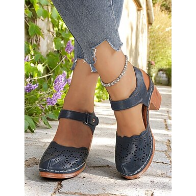 調節可能なストラップ付きのレディースカットアウトフェイクレザーブロックヒールサンダル。毎日の通勤、ガーデンパーティー、ファーマーズマーケット、ボヘミアンスタイルの夏のお出かけにぴったりの快適なシューズです。