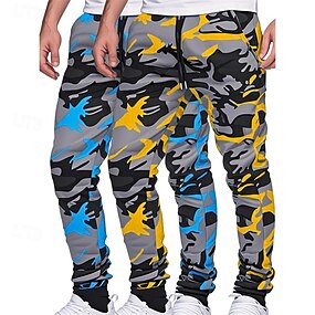 マルチパック 2個 男性用 イエローとオレンジ スウェットパンツ ジョガー 弾性ウエスト ドローストリング カモフラージュ バケーション デイリーウェア ポリエステル 春