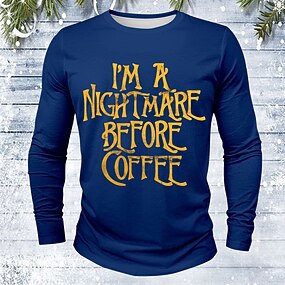 クリスマス、ナイトメアー・ビフォア・コーヒーのシャツ、面白いホリデー長袖Tシャツ、男性用、コーヒー愛好家向け、朝のユーモアギフト