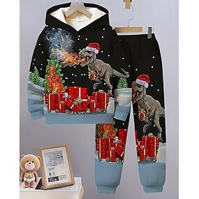 クリスマス 男の子 3D サンタクロース クリスマスセット パーカー&スウェットパンツセット セット 長袖 3Dプリント 秋 冬 活発的 ファッション クール ポリエステル 子供 3〜12年 アウトドア ストリート バケーション レギュラー