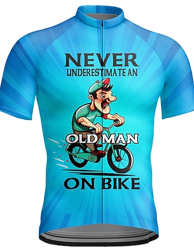 男性用 サイクリングジャージー グラフィック 文字&番号 おかしい 半袖 バイク ジャージー トップス 3つのリアポケット付き マウンテンサイクリング ロードバイク 速乾性 反射性ストリップ 後ポケット 吸汗性 スポーツ ブラック レッド ブルー 衣類