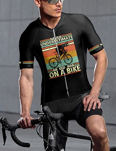男性用 サイクリングジャージー グラフィック 文字&番号 おかしい 半袖 バイク ジャージー トップス 3つのリアポケット付き マウンテンサイクリング ロードバイク 速乾性 ソフト 反射性ストリップ 後ポケット スポーツ ブラック ダークブルー 衣類