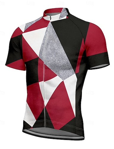 男性用 サイクリングジャージー グラフィック 幾何学模様 半袖 バイク Tシャツ ジャージー トップス 3つのリアポケット付き UV耐性 速乾性 フロントファスナー 反射性ストリップ スポーツ レッド 衣類