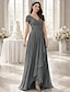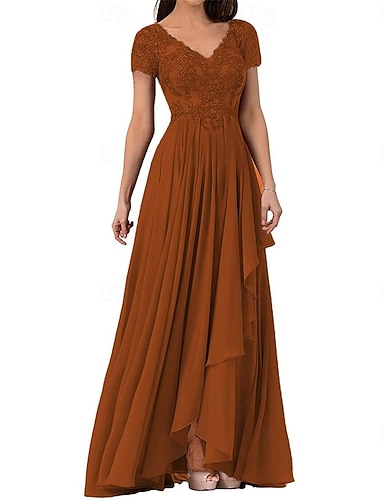Aライン フロア丈 ウェディングゲストドレス フォーマルドレス イブニングガウン マダムドS 半袖 Vネック エレガント シンプル 結婚式のゲスト フォーマルイブニング ウェディングパーティー シフォン 〜と ソリッドカラー