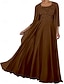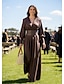 Aライン フロア丈 ウェディングゲストドレス フォーマルドレス イブニングガウン マダムドS 長袖 Vネック エレガント フォーマル 結婚式のゲスト サテン 〜と サッシュ/リボン プリーツ ソリッドカラー