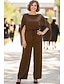 ツーピース パンツスーツ フロア丈 マダムドS ノースリーブ 半袖 カウルネック エレガント シンプル ミニマリスト フォーマル 結婚式のゲスト サテン 〜と ドレープ