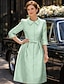 タイト/コラム 膝丈 パーティードレス 二次会ドレス / カクテルドレス ウェディングゲストドレス マダムドS 七分袖 シャツカラー エレガント ミニマリスト 結婚式のゲスト カクテルパーティー フォーマルイブニング ストレッチサテン 〜と サッシュ/リボン