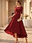 Aライン ティー レングス パーティー ドレス カクテル ドレス ウェディング ゲスト ドレス 花嫁の母 ドレス ロング スリーブ カウル ネック エレガント フォーマル ウェディング ゲスト ボタン付き