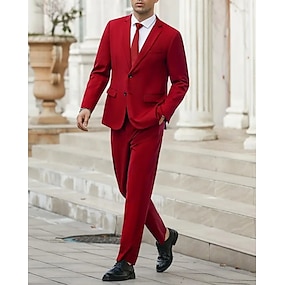 男性用 卒業式 ブレザー セット ビジネス カクテルパーティー ウェディングパーティー ファッション カジュアル 春 & 秋 ポリエステル 純色 ポケット 2個 快適 シングルブレスト ブレザー ブラック ホワイト ルビーレッド