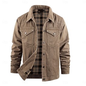 男性用 フリースの上着 テディコート アウトドア デイリーウェア ウォーム ボタン ポケット 秋 冬 平織り ファッション ストリートファッション ラペル レギュラー ブラウン ジャケット