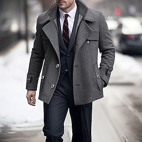 男性用 ピーコート トレンチコート バケーション 日常 秋 冬 ポリエステル 保温 防風 アウターウェア 衣類 ファッション クラシック 平織り ポケット ラペル シングルブレスト