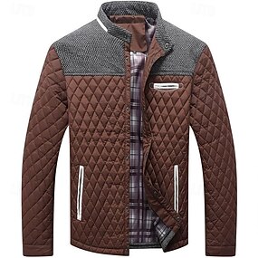 男性用 パフジャケット カジュアルジャケット 日常 バケーション 保温 ポケット 秋冬 カラーブロック ファッション クラシック スタンド レギュラー ブラック ワイン ネイビーブルー ブラウン カーキ色 ジャケット