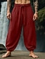 男性用 リネンパンツ サマーパンツ バギーパンツ 伸縮袖口 平織り 履き心地よい 高通気性 膝丈 アウトドア カジュアル 日常 旅行度假风 ヴィンテージ アーミーグリーン ルビーレッド 伸縮性なし