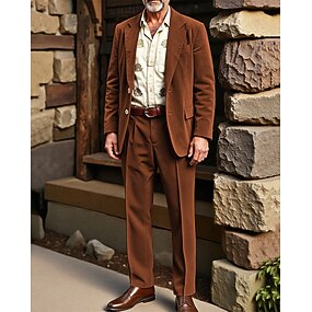 男性用 フェイクスエードジャケット フェイクスエードブレザー セット ビジネス カクテルパーティー ウェディングパーティー ファッション カジュアル 春 秋 合成皮革 平織り ポケット ボタン 快適 シングルブレスト ブレザー ネイビーブルー ブラウン グリーン カーキ色