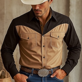 男性用 カウボーイ ウエスタンシャツ ボタンアップシャツ カウボーイシャツ 長袖 ヴィンテージ 西洋料理 アウトドア 日常 祝日 春 秋 冬 折襟 襟付きシャツ 3Dプリント ブラウン