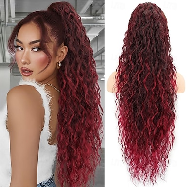 13インチのポニーテールエクステンション、ロングカーリーポニーテールクリップインクローヘアエクステンション、女性用ナチュラルな合成ヘアピース