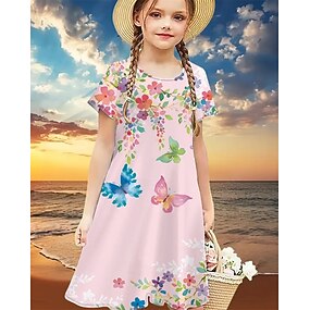 女子 3D バタフライ ドレス 半袖 夏 春 バケーション 日常 祝日 プリンセス 美しい 甘い 子供 4〜12年 カジュアルドレス 膝丈 レギュラー
