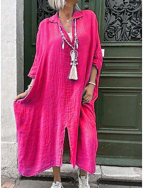 女性用 ホワイト ローズレッド グレー 春 秋 マキシドレス リネン風ドレス エレガント ファッション 祝日 デート ルーズフィット シャツカラー