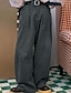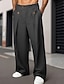 男性用 ズボン スーツ プリーツパンツ スーツパンツ ワッフルパンツ ボタン フロントポケット まっすぐな足 平織り 履き心地よい 高通気性 ビジネス 日常 祝日 ファッション シック・モダン ブラック ホワイト
