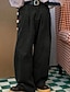 男性用 スーツ コーデュロイパンツ ズボン ボタン まっすぐな足 平織り 履き心地よい ソフト 全長 フォーマル オフィス カジュアル スタイリッシュ シンプル ルーズフィット ブラック ホワイト ハイウエスト マイクロエラスティック