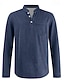 男性用 ワッフルポロシャツ ポロシャツ フォーマル ビジネス リブ付きポロカラー 長袖 ファッション 純色 ボタン 春 & 秋 ネイビーブルー ライト アーミーグリーン ワッフルポロシャツ