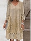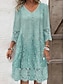 女性用 ミニドレス シフトドレス カジュアル 日常 レギュラー 平織り 七分袖 Vネック ブルー キャメル グリーン 春 秋