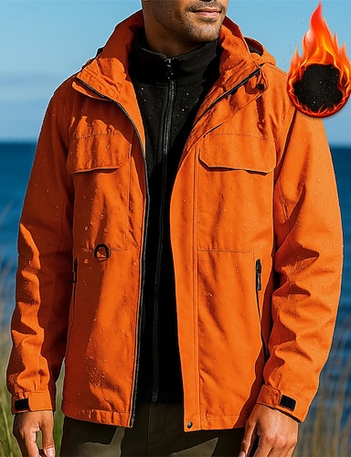 男性用 ウィンドブレーカー ハイキング ジャケット ハイキング フリースジャケット 冬 アウトドア 保温 防水 防風 フリースジャケット 狩猟 登山 キャンプ / ハイキング / ケイビング ブラック ダークブルー ネービーブルー オレンジ