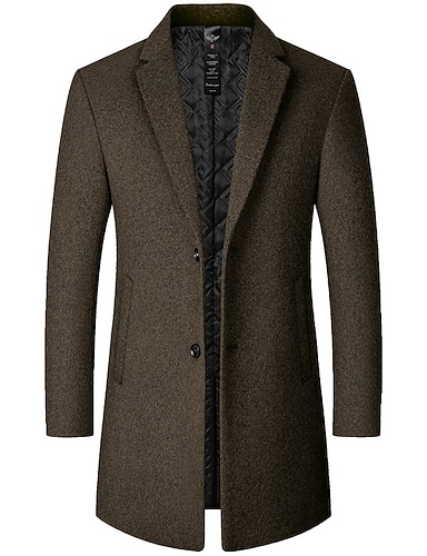男性用 冬物コート トレンチコート オフィス&キャリア デイリーウェア 冬 ポリエステル 保温 洗濯可 アウターウェア 衣類 ファッション ウォームアップ ソリッド ポケット ラペル シングルブレスト