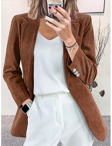 女性用 ブレザー 快適 高通気性 ポケット エレガント カジュアル 平織り オフィス ストリート カジュアル デイリーウェア オープンフロント レギュラー 折襟 レギュラー 長袖 アウターウェア ブラック ワイン ブルー 春 秋