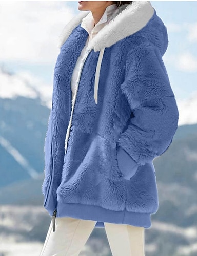 女性用 冬物コート シェルパジャケット 快適 高通気性 ジッパー ポケット カジュアル 平織り バケーション ストリート カジュアル デイリーウェア ジッパ- レギュラー 折襟 レギュラー 長袖 アウターウェア ホワイト ピンク パープル 春 秋
