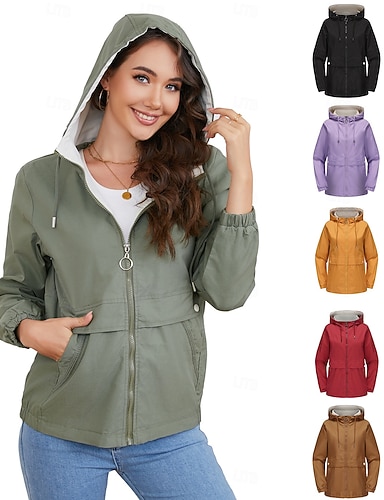 女性用 トレンチコート パーカージャケット 快適 高通気性 ジッパー ポケット カジュアル 平織り バケーション ストリート デイリーウェア お出かけ ジッパ- レギュラー パーカー レギュラー 長袖 アウターウェア ブラック イエロー ワイン 春 秋