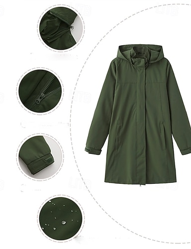 女性用 トレンチコート 防水レインジャケット レインコート 防水 防風 ジッパー ポケット ファッション 屋外 平織り お出かけ 週末 ジッパ- レギュラー フード付き レギュラー 長袖 アウターウェア ブラック ホワイト バーガンディー 秋 冬