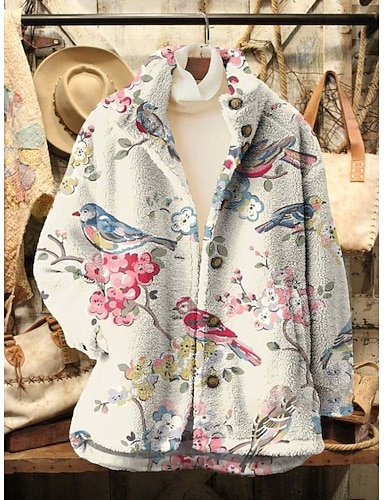 女性用 フリースの上着 カジュアルジャケット 快適 高通気性 ポケット プリント カジュアル フラワー バケーション ストリート カジュアル デイリーウェア ジッパ- レギュラー 折襟 レギュラー 長袖 アウターウェア ピンク フクシャ カーキ色 春 秋