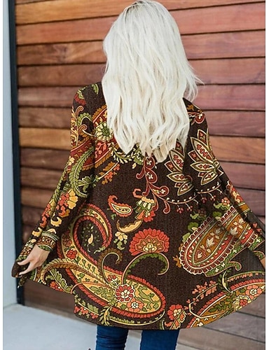 女性用 カジュアルジャケット 保温 快適 不規則な裾 オープンフロント エレガント ヴィンテージ ファッション 近代の フラワー ストリート カジュアル アスレイジャー 日常 ロング ノーカラー レギュラー 長袖 アウターウェア ブラック ブラウン コーヒー 秋
