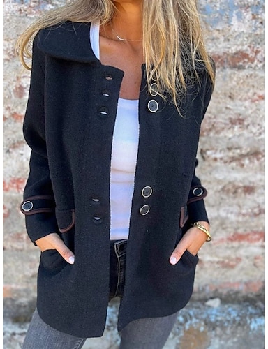 女性用 冬物コート 保温 快適 ポケット ファッション 日常 平織り アウトドア カジュアル 日常 シングルブレスト レギュラー 折襟 レギュラー 長袖 アウターウェア ブラック ルビーレッド パープル 春 秋