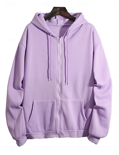 レディース パーカー スウェットシャツ カジュアル ストリート デイリーウェア パーカー ジップアップ フロントポケット 長袖 ピンク パープル ベージュ 秋 冬