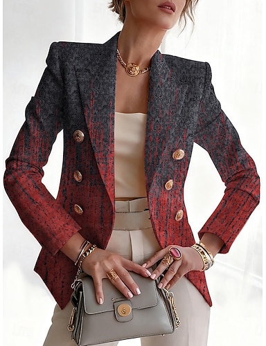 女性用 ブレザー 快適 高通気性 ボタン プリント ファッション カジュアル 幾何学模様 オフィス ストリート カジュアル デイリーウェア ダブルブレスト レギュラー ノッチドラペル レギュラー 長袖 アウターウェア ルビーレッド ブルー パープル 秋 冬